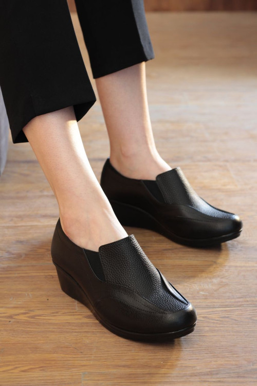 این کفش زنانه چرم صنعتی و طبی، ترکیبی از راحتی، دوام و استایل رسمی را برای شما فراهم میکند. رویهی آن از چرم باکیفیت ساخته شده که علاوه بر زیبایی و لوکس بودن، مقاومت بالا و قابلیت تنفس دارد، بنابراین از تعریق پا جلوگیری میکند. طراحی طبی این کفش باعث میشود فشار روی پا و کمر کاهش یابد و برای استفادهی روزمره یا طولانیمدت کاملاً مناسب باشد. زیرهی آن از جنس PU (پلییورتان) بوده که علاوه بر سبکی، خاصیت ضدسایش و ضربهگیری دارد، در نتیجه از خستگی پا جلوگیری میکند. این کفش بهترین انتخاب برای خانوم هایی است که به سلامتی، راحتی و استایل رسمی خود اهمیت میدهند