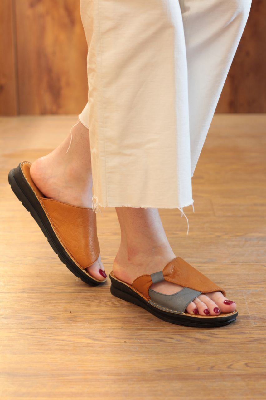 صندل چرم طبیعی زنانه مدل بغل پاپیون