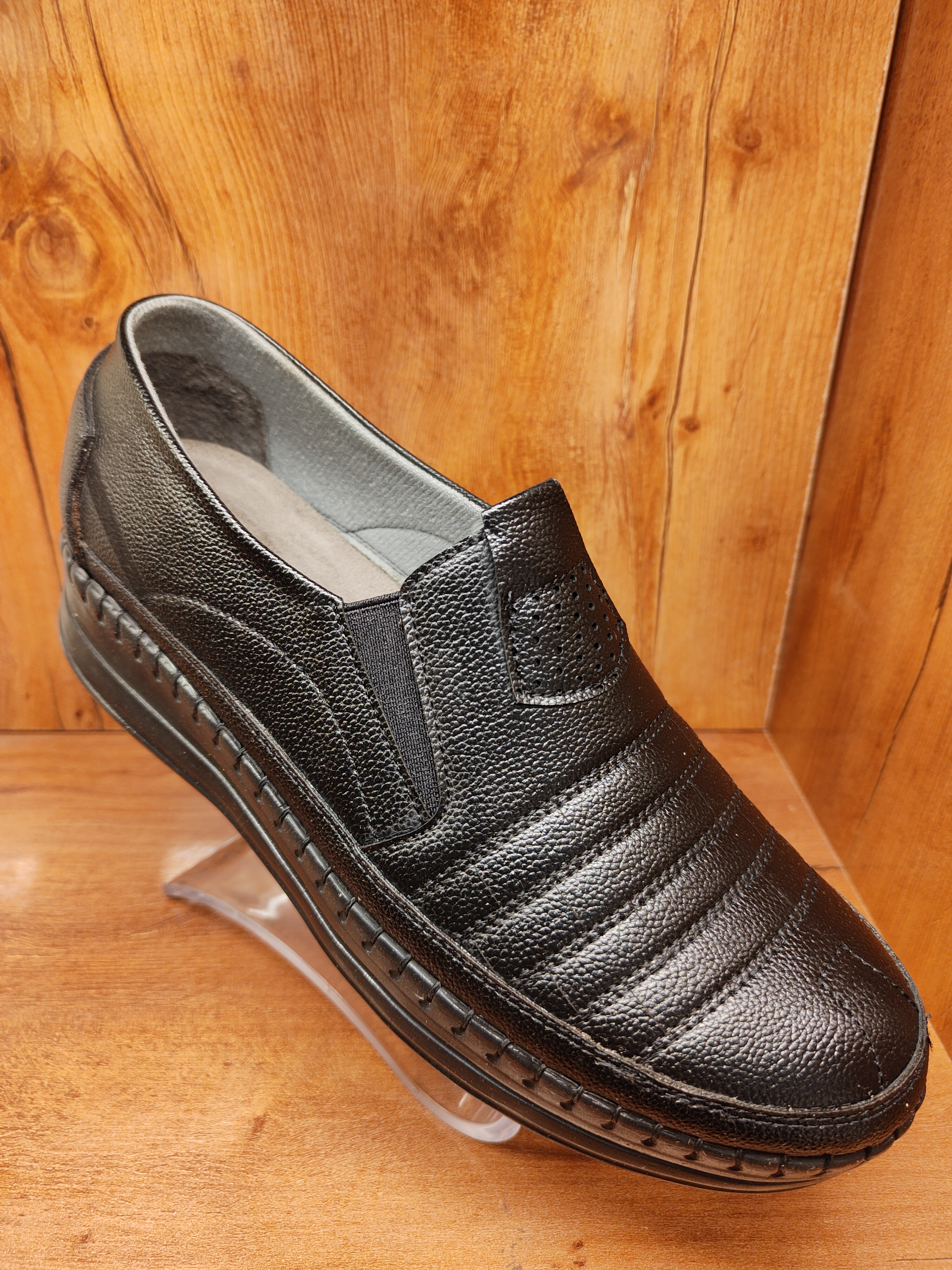 این کفش زنانه چرم صنعتی و طبی، ترکیبی از راحتی، دوام و استایل رسمی را برای شما فراهم میکند. رویهی آن از چرم باکیفیت ساخته شده که علاوه بر زیبایی و لوکس بودن، مقاومت بالا و قابلیت تنفس دارد، بنابراین از تعریق پا جلوگیری میکند. طراحی طبی این کفش باعث میشود فشار روی پا و کمر کاهش یابد و برای استفادهی روزمره یا طولانیمدت کاملاً مناسب باشد. زیرهی آن از جنس PU (پلییورتان) بوده که علاوه بر سبکی، خاصیت ضدسایش و ضربهگیری دارد، در نتیجه از خستگی پا جلوگیری میکند. این کفش بهترین انتخاب برای خانم هایی است که به سلامتی، راحتی و استایل رسمی خود اهمیت میدهند